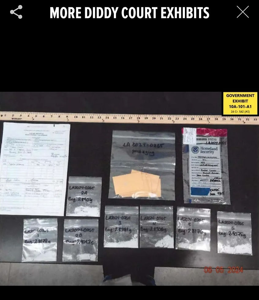 Special Agent Yasin Binda of Homeland Security Investigations testified that the search of Sean Combs room at the Park Hyatt had illegal drugs. A pill bottle containing clonazepam prescribed to Frank Black, the alias Cassie said Combs uses, glassine bags containing pink powder that tested positive for Ketamine and MDMA, and more the agent testified. Nine bottles of baby oil, bottles lube, and $9,000 in cash.